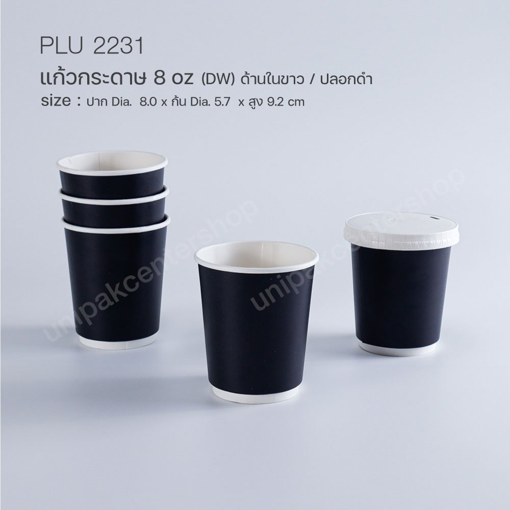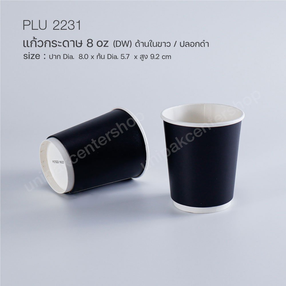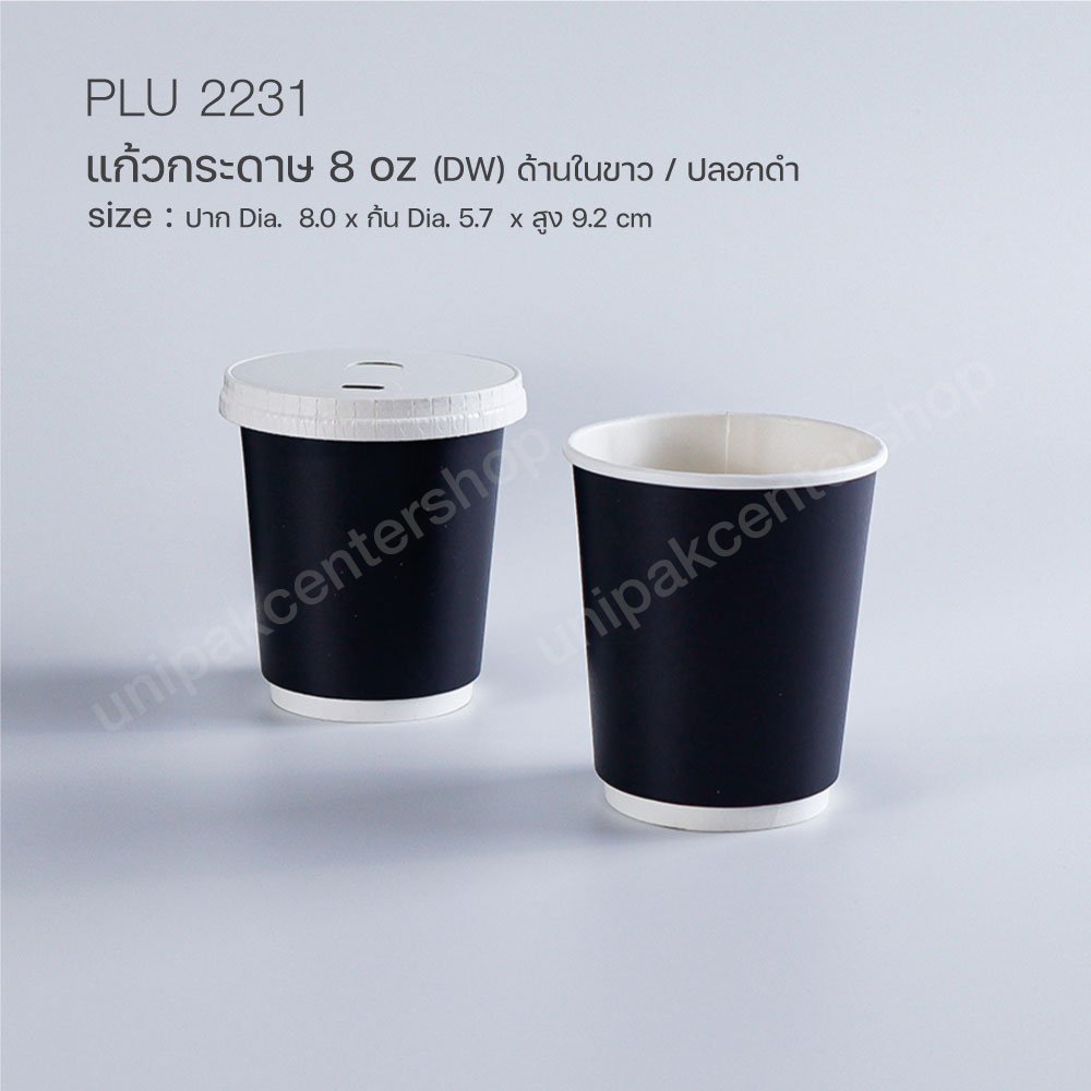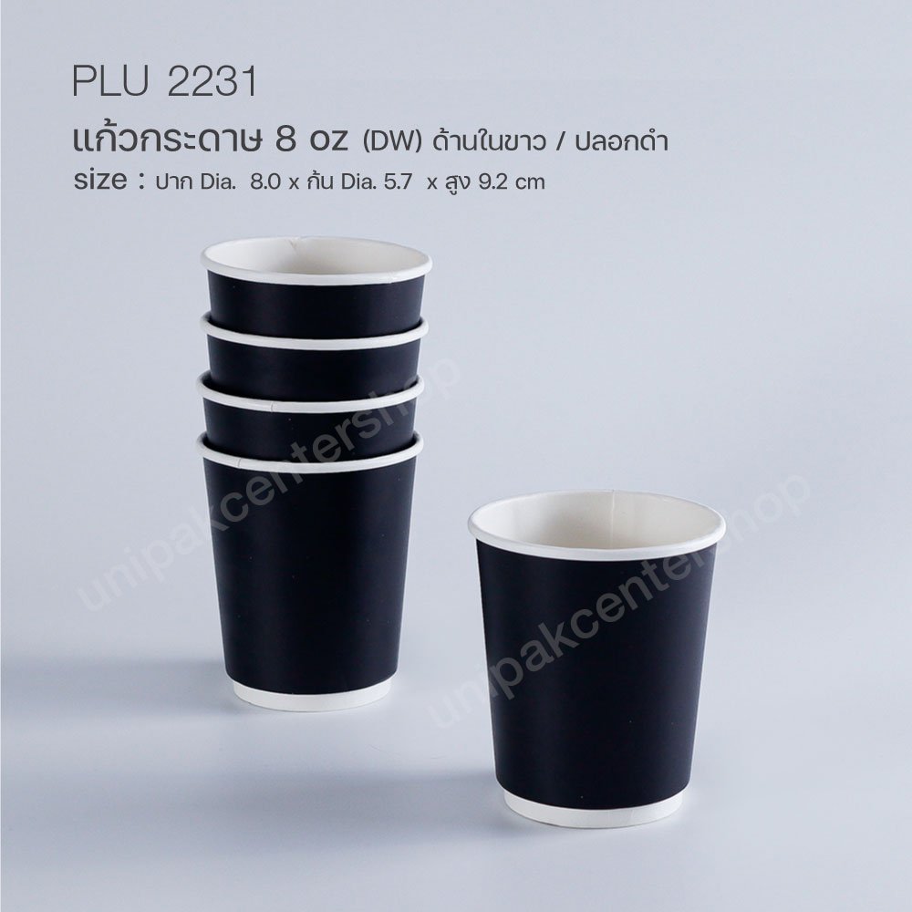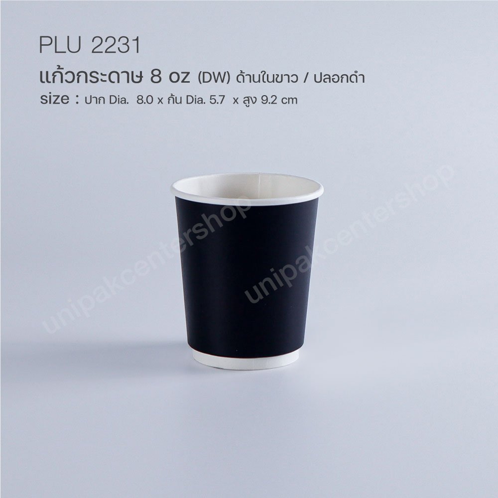 แก้วกาแฟกระดาษ 8 oz (DW) ด้านในขาว / ปลอกดำ